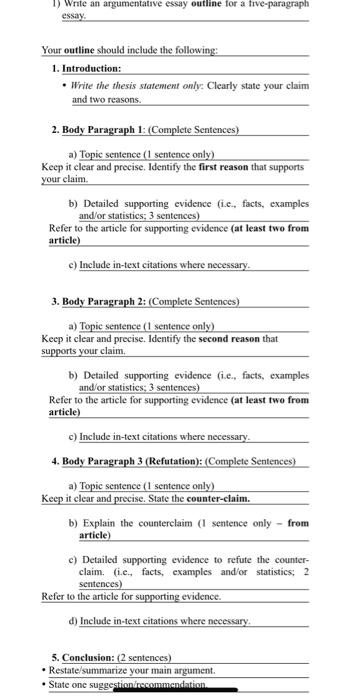 Argumentative Essay Outline Claim Directions Study Notes Reasoning Docsity